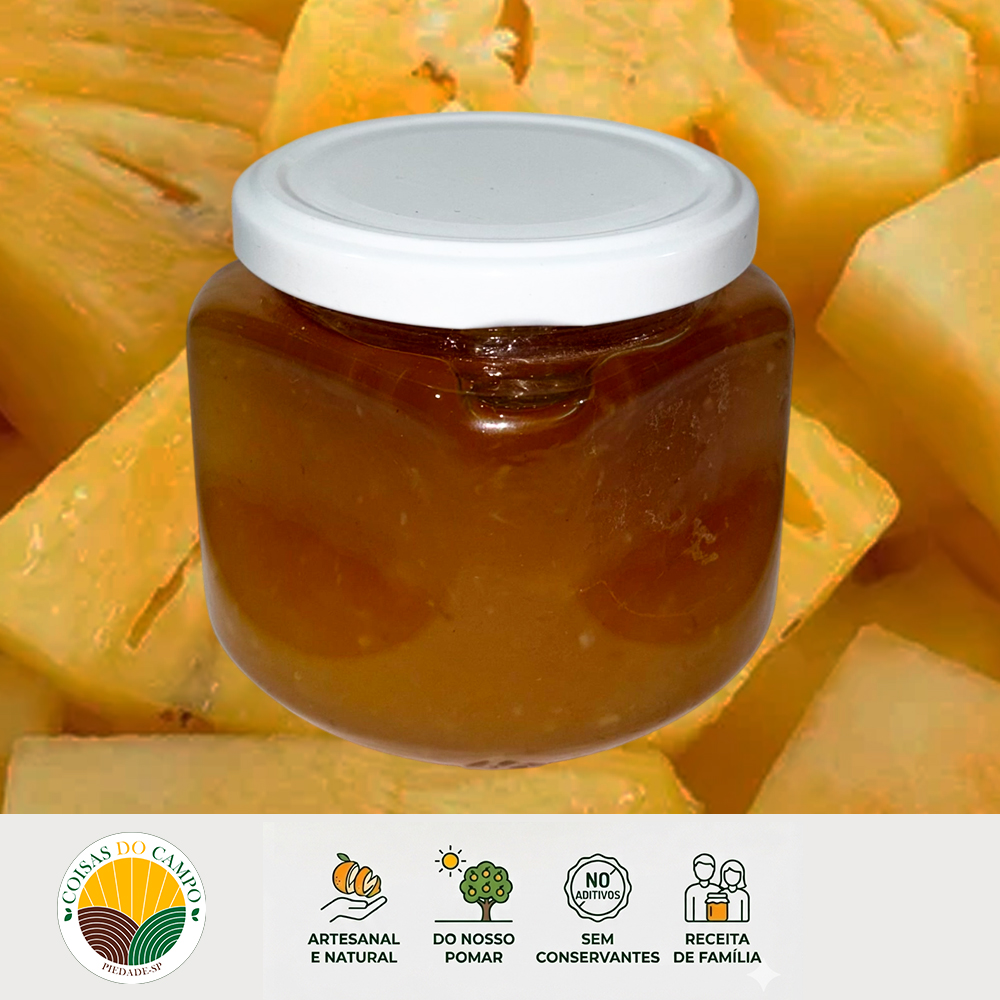 Produzida em pequenos lotes, com ingredientes naturais e sem aditivos artificiais, a Geleia de Abacaxi da Coisas do Campo é ideal para quem busca um sabor leve, autêntico e versátil.