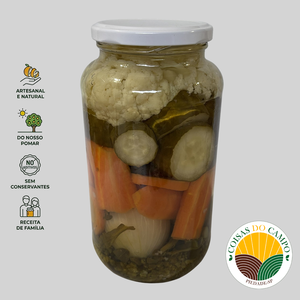 Conservados em uma marinada suave e equilibrada, os legumes mantêm sua crocância natural e absorvem um sabor delicado e levemente ácido, tornando cada garfada uma experiência irresistível. É o acompanhamento ideal para quem busca praticidade sem abrir mão do sabor caseiro e da tradição do campo.